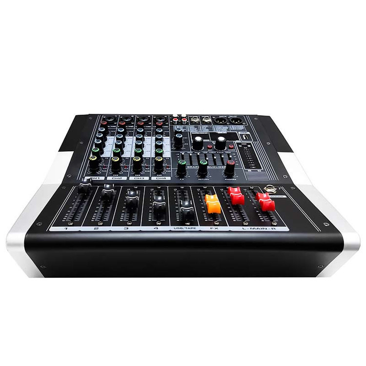 پاورمیکسر 4 کانال طرح یاماها (طراحی و ساخت چین) مدل ED4USB با توان خروجی 600 وات بیشینه (هر کانال 400 وات بصورت استریو در 4 اهم) دارای آمپلی فایر کلاس AB دارای 4 کانال ورودی میکروفن با پری امپ و افکت دیجیتال و مجهز به پخش کننده فلش و بلوتوث می باشد.