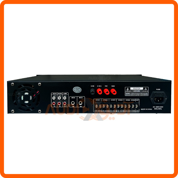 - پاور با توان 180 تا 240 وات جهت راه اندازی انواع بلندگو های ولتی (70 یا 100 ولت) و اهمی (4 تا 16 اهم)