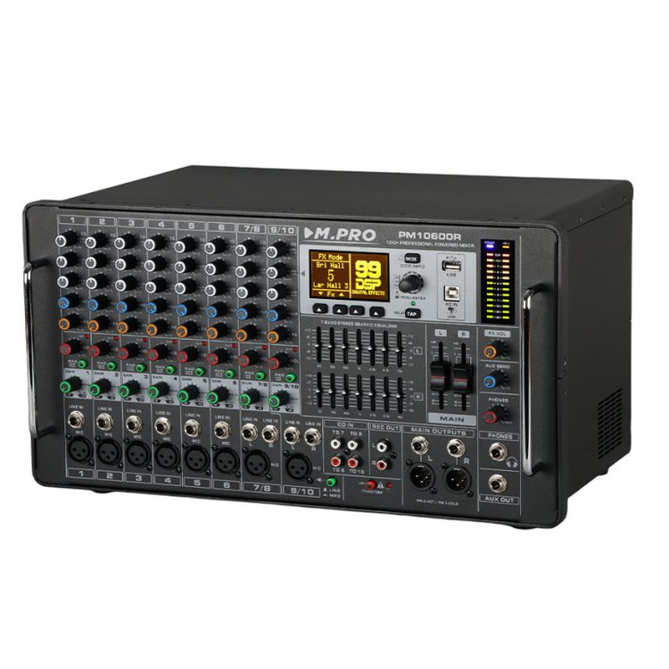 پاور میکسر رک مونت ام پرو مدل PM10600 یکی از با کیفیت ترین و کامل ترین پاور میکسر جهت نصب در رک صوتی می باشد. امکانات زیاد بهمراه ورودی و خروجی های متنوع باعث شده است پاور میکسر رک مونت ام پرو MPRO PM10600R به یکی از محبوب ترین پاور میکسرهای نصبی تبدیل شود و در بسیاری از پروژه های صوتی مورد استفاده قرار گیرد. استفاده از میکسر ، پاور قدرتمند و همچنین افکت 3 که دارای 99 افکت دیجیتال با قابلیت تنظیم و 20 حافظه برای ذخیره افکت های ساخته شده توسط کاربر.
