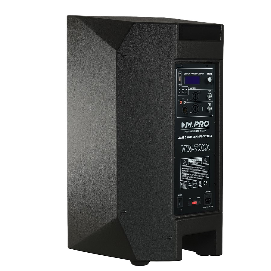 قدرت و کیفیت را به صورت همزمان می توان در باند اکتیو ام پرو مدل M.PRO MW-700A دریافت کرد و با این اسپیکر اکتیو وارد دنیای حرفه ای صدا شد. باند اکتیو ام پرو مدل MW-700A از سری اسپیکرهای 2WAY است که از ووفر 15 اینچ و تیوتر 1.75 اینچی تشکیل شده است و توسط آمپلی فایر دیجیتال DSP راه اندازی می شود. صدای خروجی گرم با توان 700 وات، باند اکتیو ام پرو MW-700A را بهترین انتخاب برای اجرای زنده موسیقی و مراسمات مذهبی تبدیل کرده است و یکی از بهترین انتخاب ها خواهد بود.